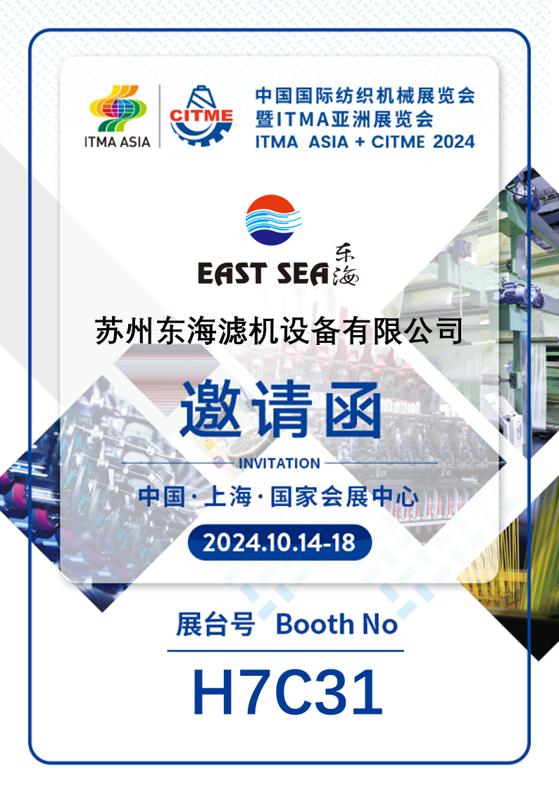【相约上海 · 10月14-18日】苏州东海滤机设备有限公司即将亮相2024中国国际纺织机械展览会暨ITMA亚洲展览会