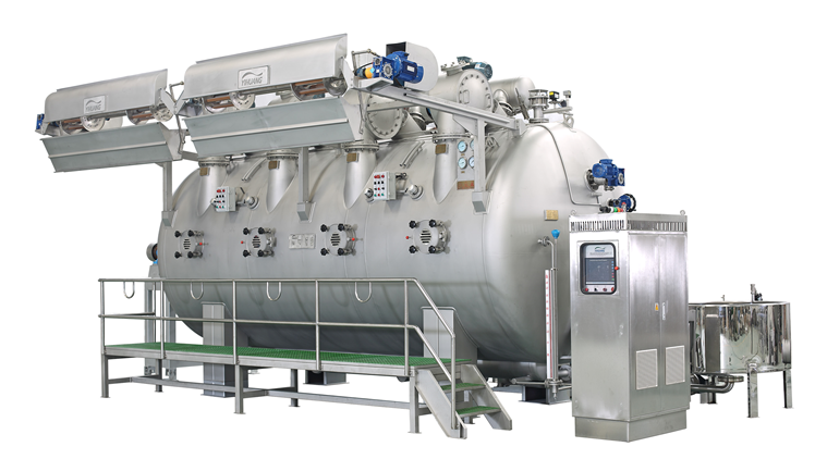 本次展会公司重点推出各型号的染色机及拉幅定型机、呢毯预缩机等染整设备。艺煌是一家中外合作生产企业,专业生产高温气液染色机、低浴比溢流染色机、中样溢流染色机、拉幅定型机、呢毯预缩机等染整设备。公司拥有现代化的生产车间和科学的管理制度,有大型激光切割机、数控冲床、等离子自动焊接机等先进设备,技术力量雄厚。高质量的产品和优质的售后服务让我们公司蜚声海外。YOH-500A超低张力染色机