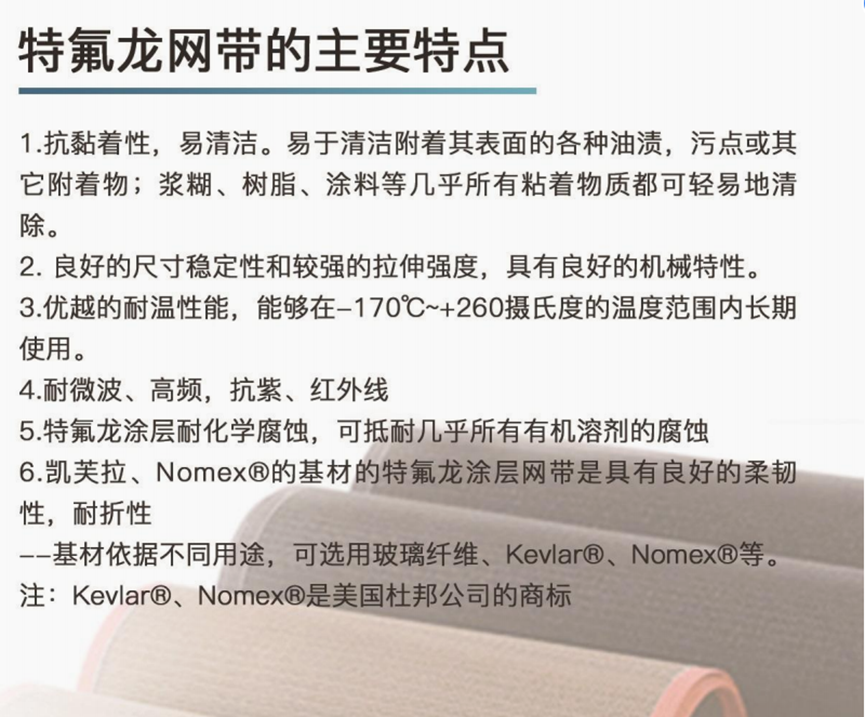 我司重点提供高温防腐防粘功能性专用带、工业输送带、动力传送带等系列产品。聚四氟乙烯制品: 如薄膜、胶带、片材以及玻纤、Kevlar?、Nomex?等织物为基材的涂覆四氟产品硅胶产品: 如硅胶涂覆工业用带,硅胶涂覆耐温热布、硅胶皮板等工业织物及工业用带: 如纯棉、聚酯、PPS、PEEK过滤织物,芳纶、玻纤织物等各种工业传送带,无接头环形带等。EFAB?依托于上海凯耀工业皮带有限公司有近三十年工业输送带自主研发、生产加工、销售与服务的经验模式合作平台。重点提供高温防腐防粘功能性专用带、工业输送带、动力传送带等系列产品,为汽车、纺织、机械设备、太阳能、新能源、化工、制药、食品加工、建材等行业的用户提供选型,订购,生产,安装调试,维护等,致力于专业技术、售后、销售、生产一体化的定制化服务体验!EFAB? 在浙江衢州投资自购土地33亩,筹建生产基地扩大至20000平方。